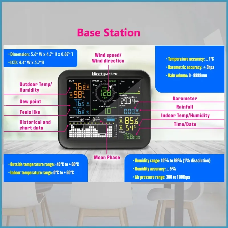 0345-026T 5-In-1 Weather Station Monitoring Wind Speed Wind Direction Rainfall Temperature Humidity Wireless Multi-function Weather Station Data Analytics