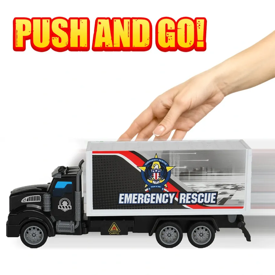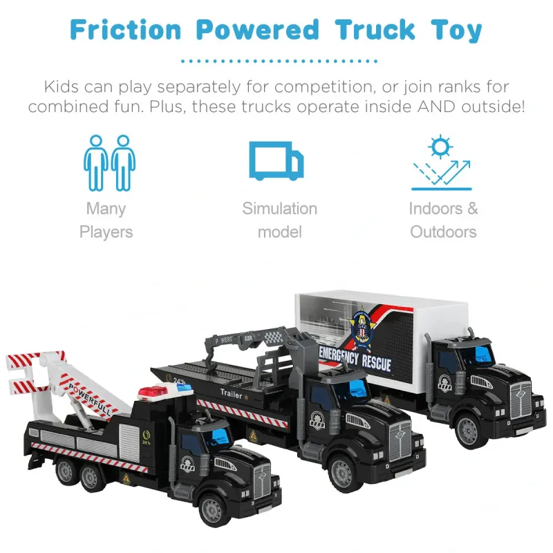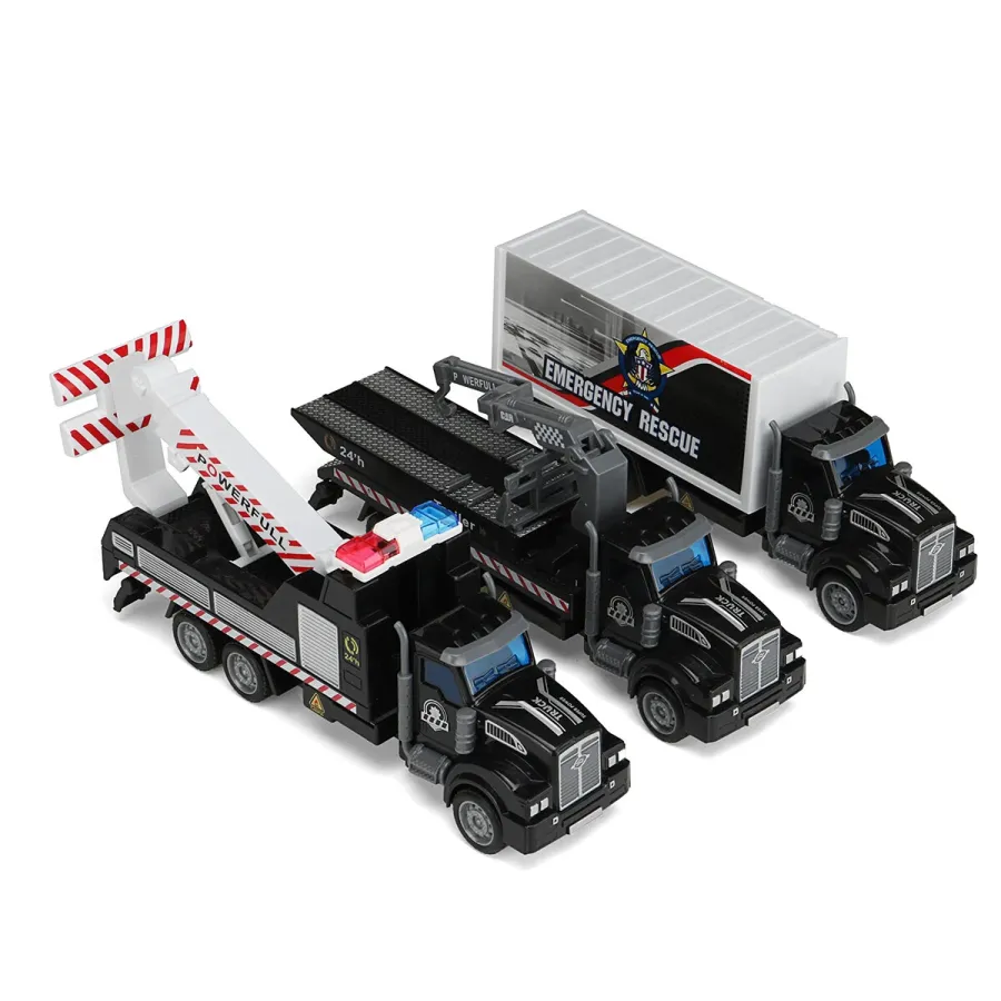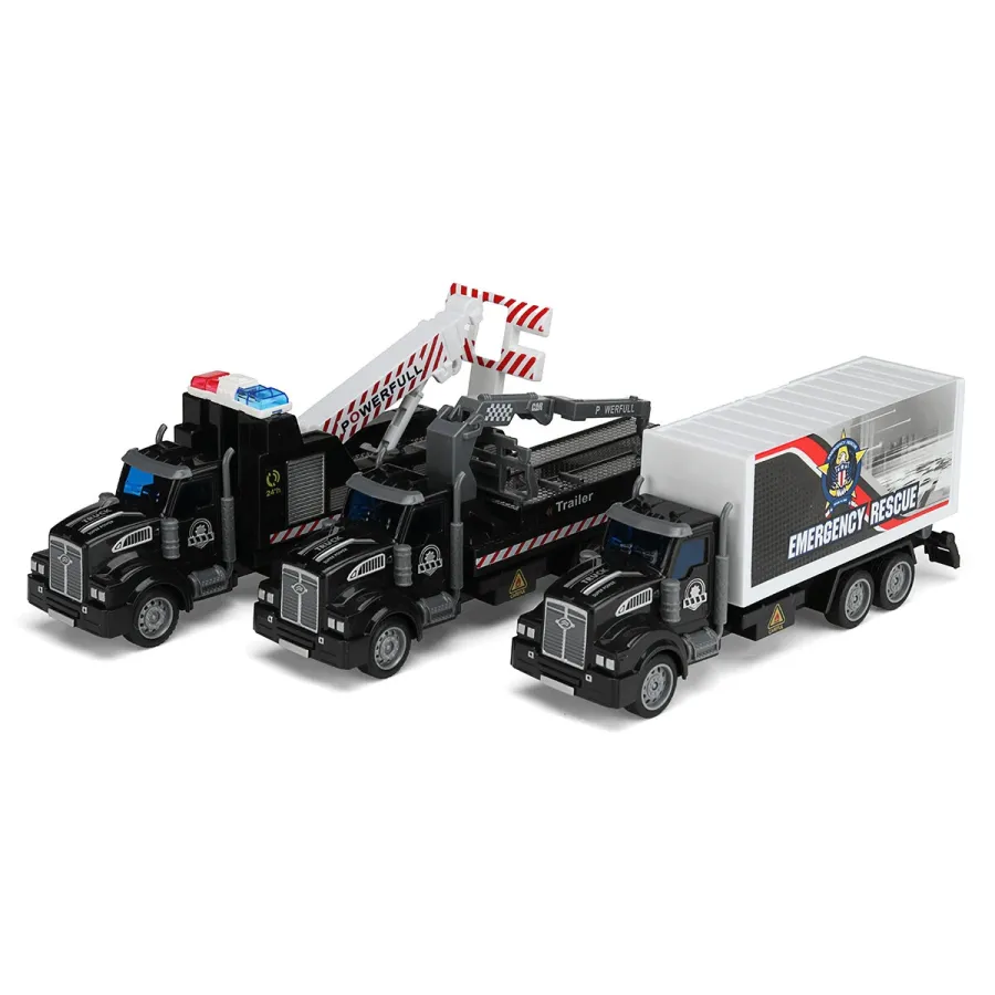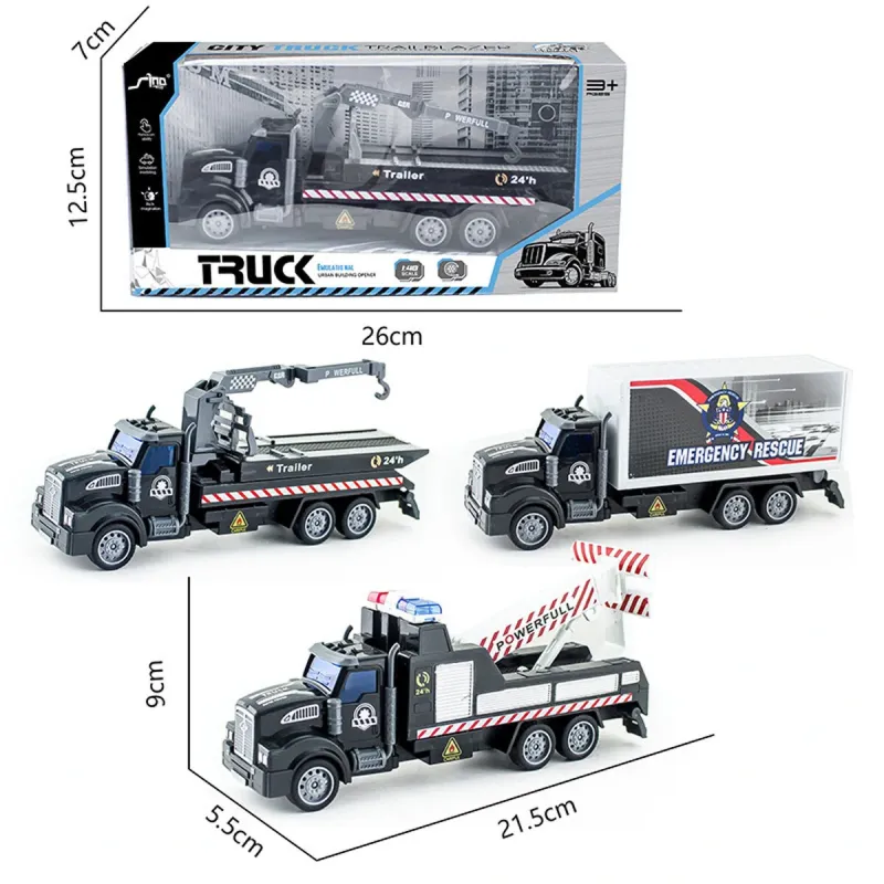 1: 48 Black Obstacle Removal Trailer / Flatbed Vehicle / Transport Vehicle Flat Head Return Environmental Sanitation Vehicle