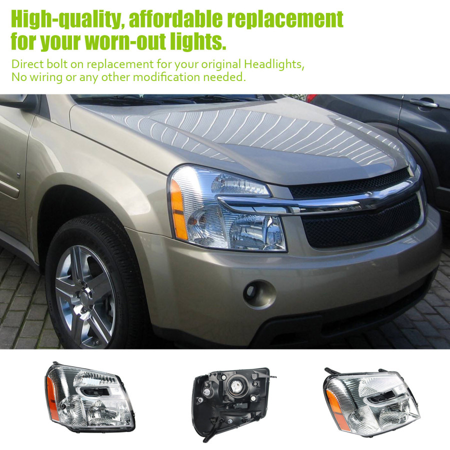 Frequently Asked Questions (FAQ) about This 1 Pair Car Headlight Assembly Clear Lens Cover Headlamp No Bulbs for Chevrolet Equinox 2005-2009