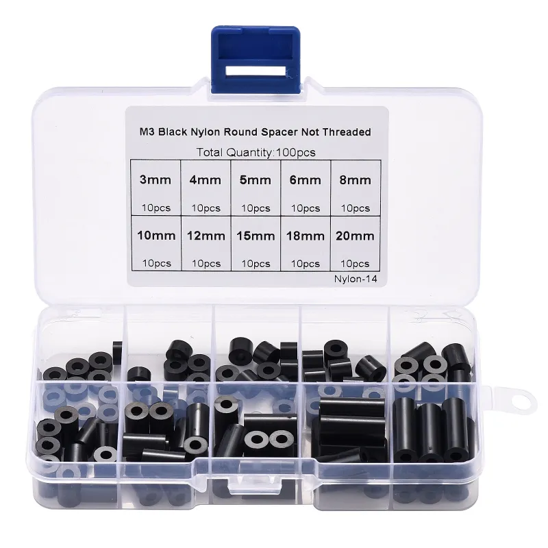 100pcs M3 Nylon Round ABS Metric Spacer Insulation Plastic Standoff Not Threaded for Screw Assortment Kit Set