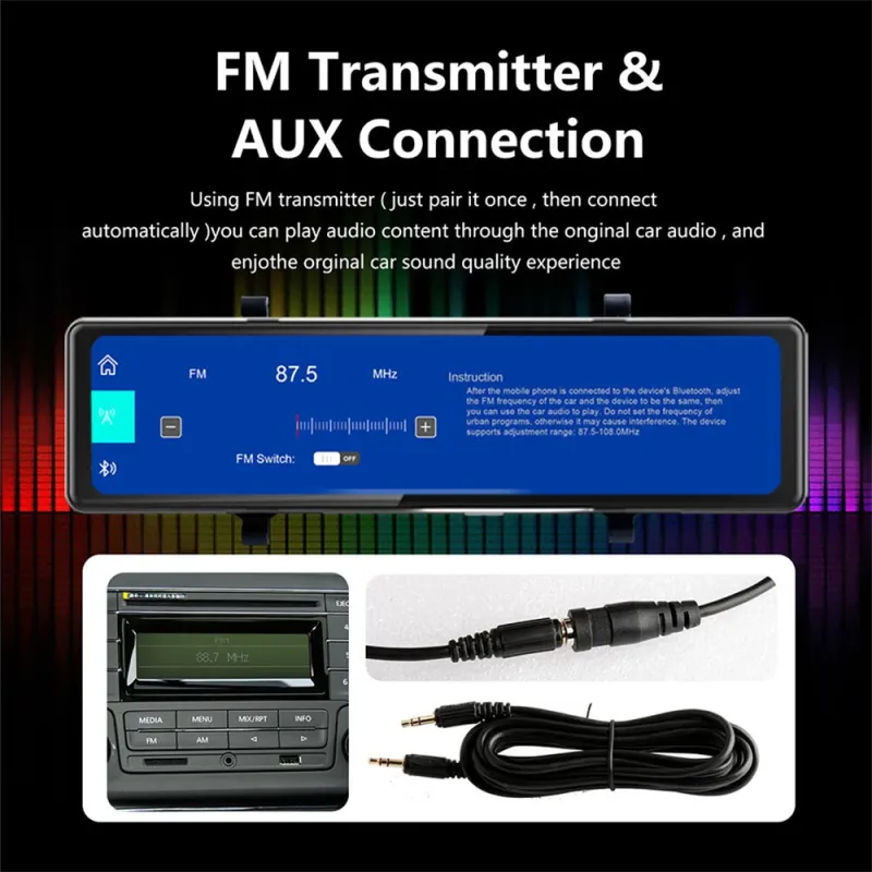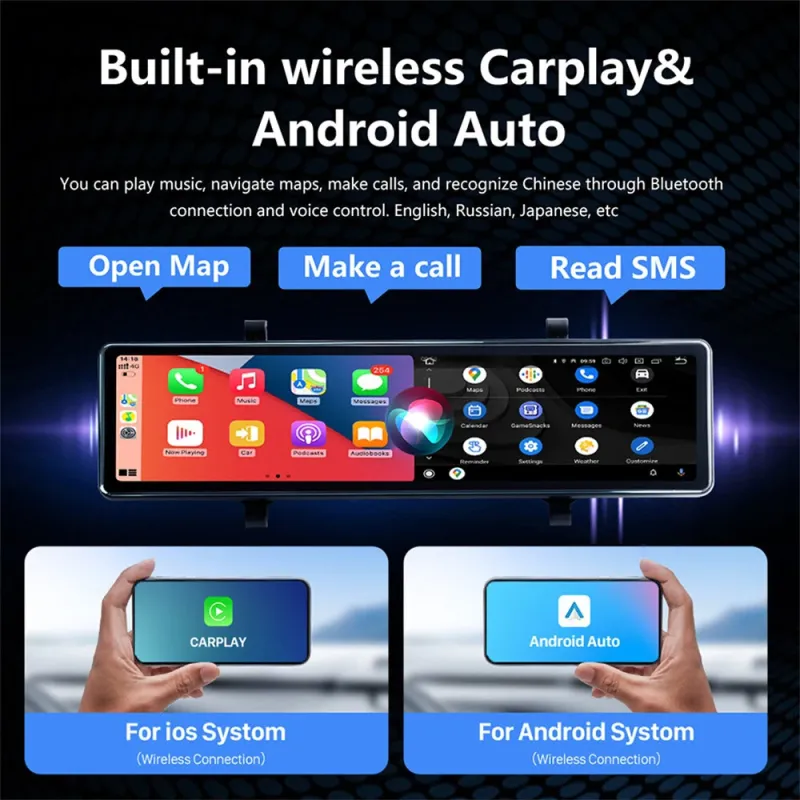 11.26 Inch 4K Carplay Android Auto Mirror Dash Cam Dual Lens Bluetooth WiFi GPS DVR Driving Recorder