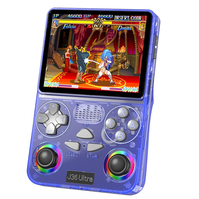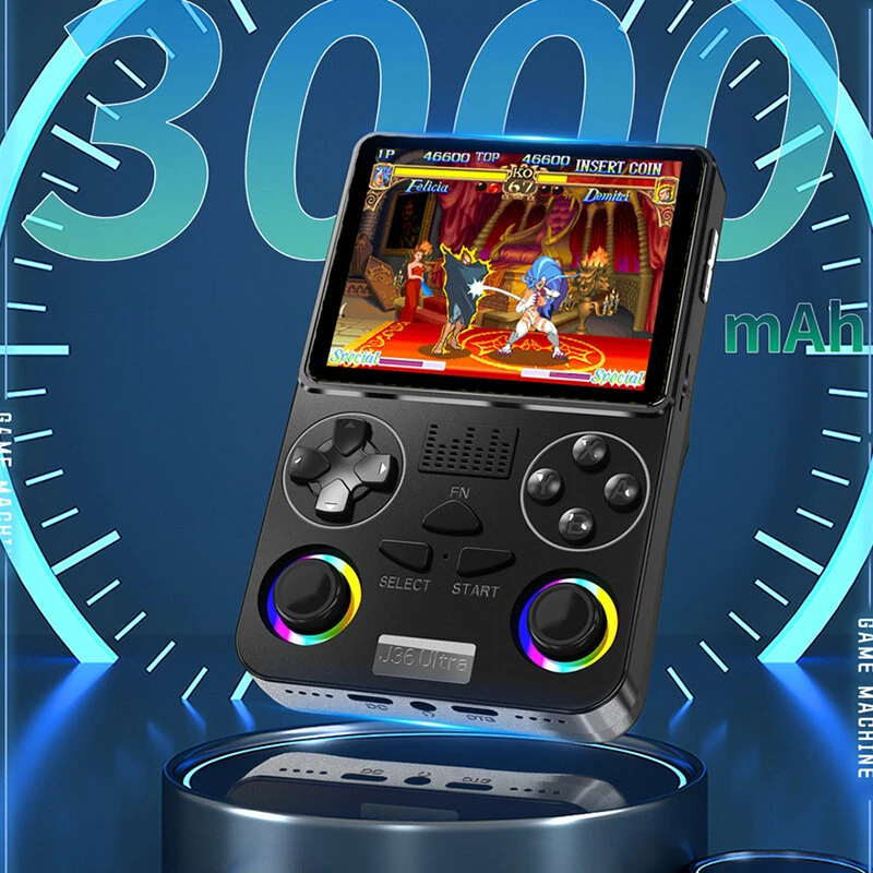 128G J36Ultra Handheld Game Console 3.5-inch Screen with RGB Joystick 8-Core A7 Processor 3000mAh Battery Retro Portable WiFi Gaming Player Console