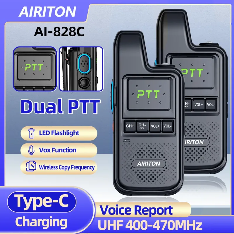 1/2PCS AIRITON AI-828C Walkie Talkie Dual PTT UHF Wireless Copy Frequency Clear Voice Report 16 Channels Portable Ham Radio