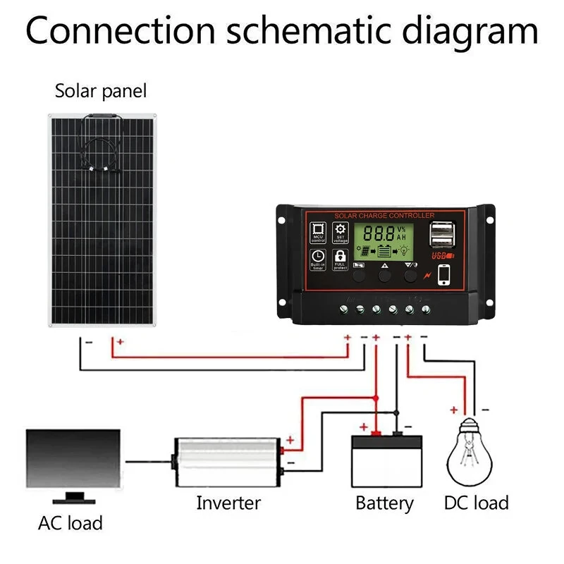 12V/24V10A-100A LCD Display Dual MOS PWM Control Solar Charge Controller with USB Solar Controller for Solar System Use