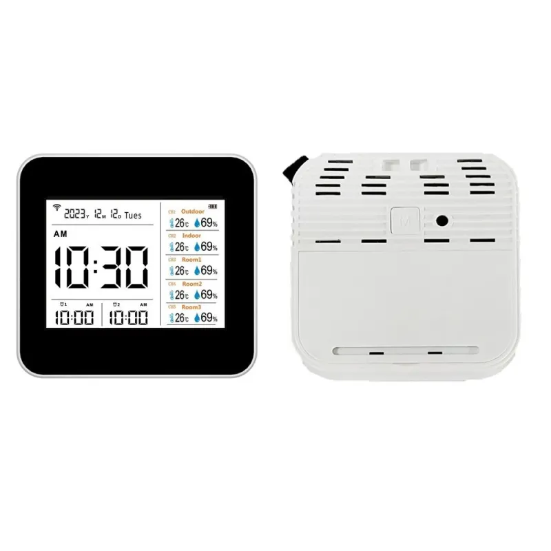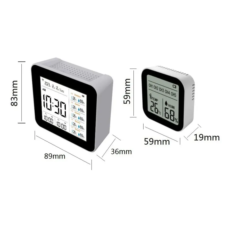 13 in 1 Tuya WIFI Intelligent Thermometer Hygrometer Indoor Accurate Temperature Humidity Gauge Monitor with Time/Calendar/Alarm Display Support Remote APP Control for Home Office
