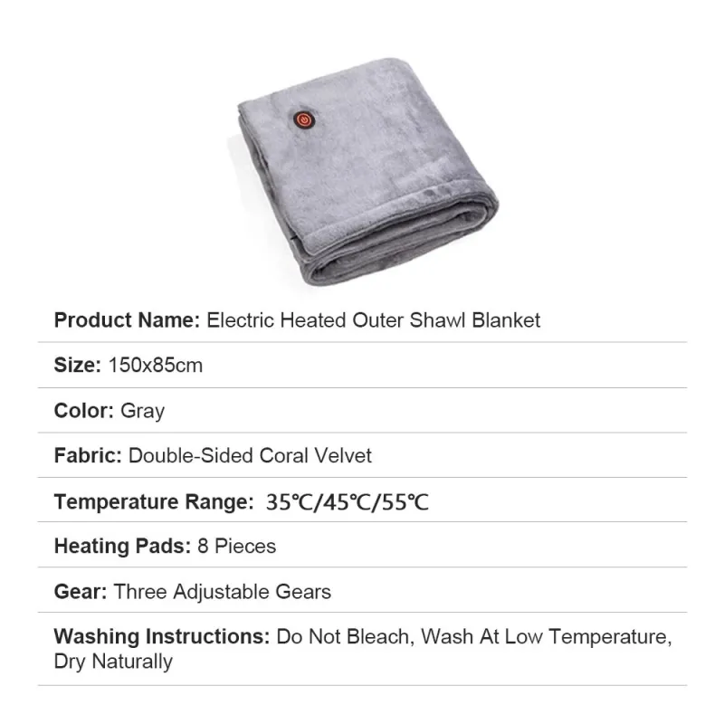 150x80cm USB Electric Blanket Warm Cape Coral Fleece Plush 3 Speed Winter Heater Warming Pad