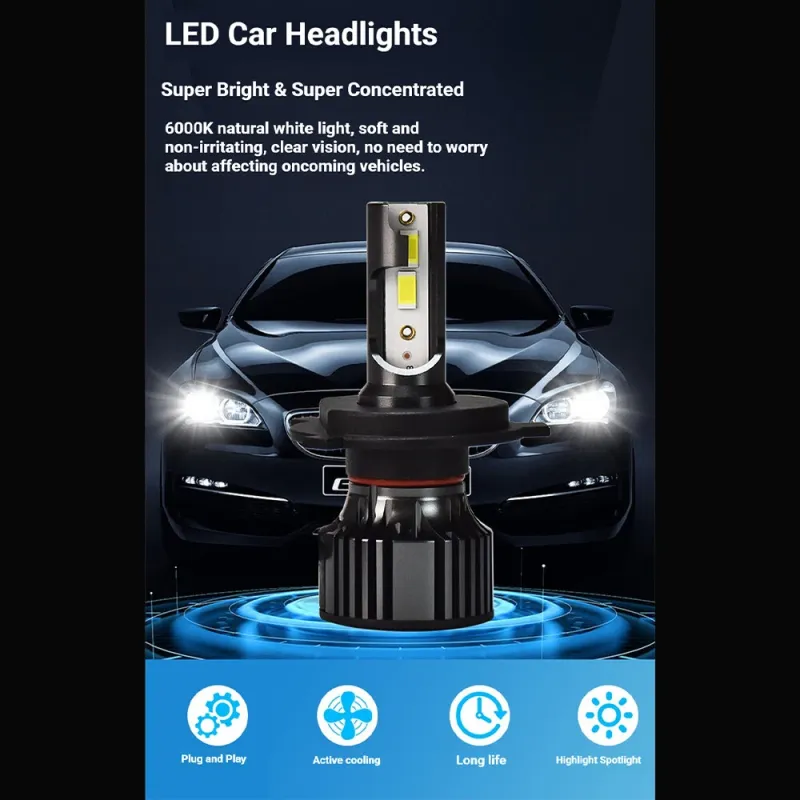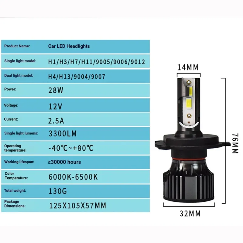 1Pair Car LED Headlight V3A-3570 H1/H4/H7/H11/9005/9006 28W 6000K 3300LM IP67 Waterproof Vehicle Front Lights