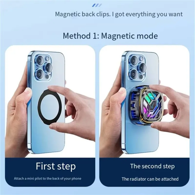 2-in-1 Magnetic Mobile Radiator Cooling Fan for iPhone Tablet Galaxy Huawei Mobile Phone Tablet Computer General Game Cooling