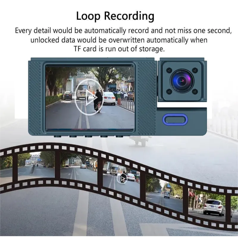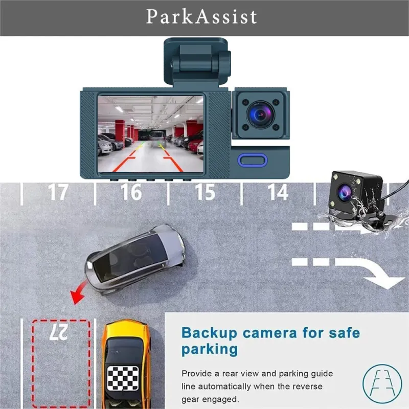 2 Inch IPS Screen Car Dash Cam 3-Channel Driving Recorder G-sensor Loop Recording Parking Monitoring