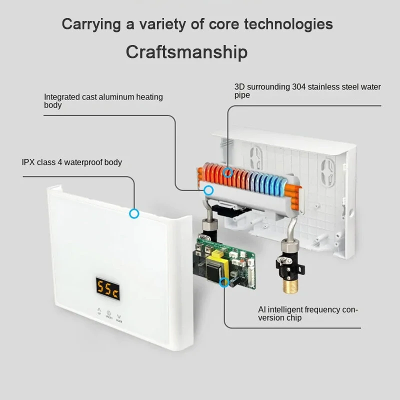 220V 3000W Instant Water Heater Bathroom Kitchen Wall Mounted Electric Hot Water FastHeater LCD Temperature Display with Remote Control