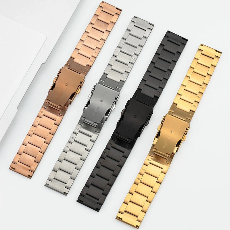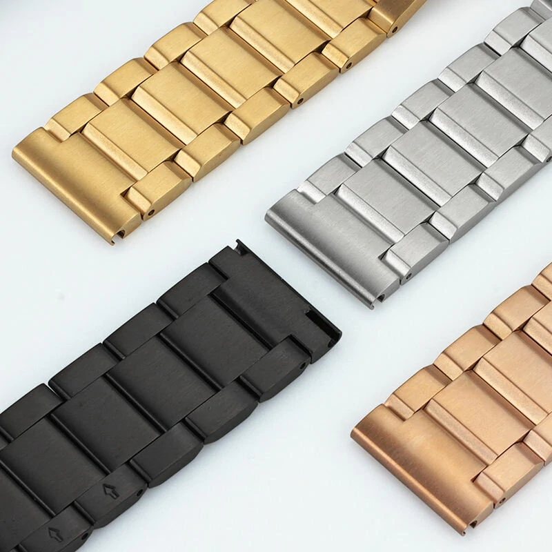 22mm Three-bead Trapezoidal Stainless Steel Watch Straps Smart Watch Band Replacement Strap
