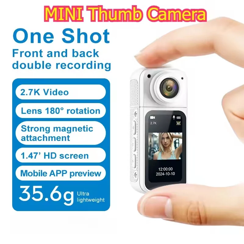 2.7K Body Camera 180 Twist Lens Camera Action Camera Thumb Camera Sports Camera Mini WIFI Sprint Action Moto Pro Cat 1080P Small Motorcycle Riding Video