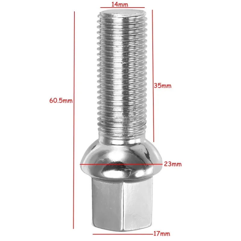 35mm Thread Silver Car Tire Screw Radius Wheel Lug Nut Bolts For Audi