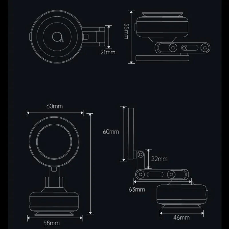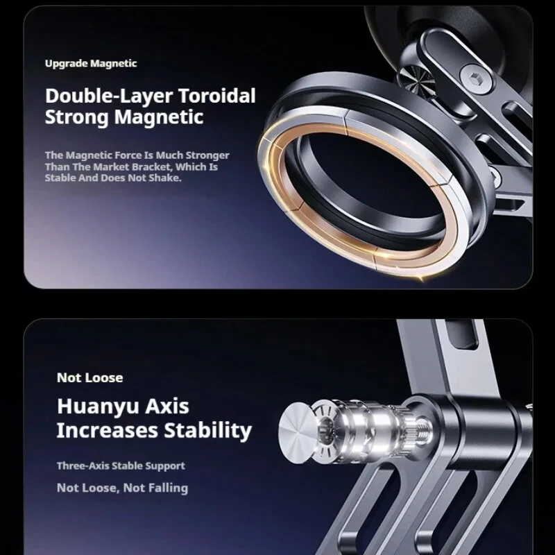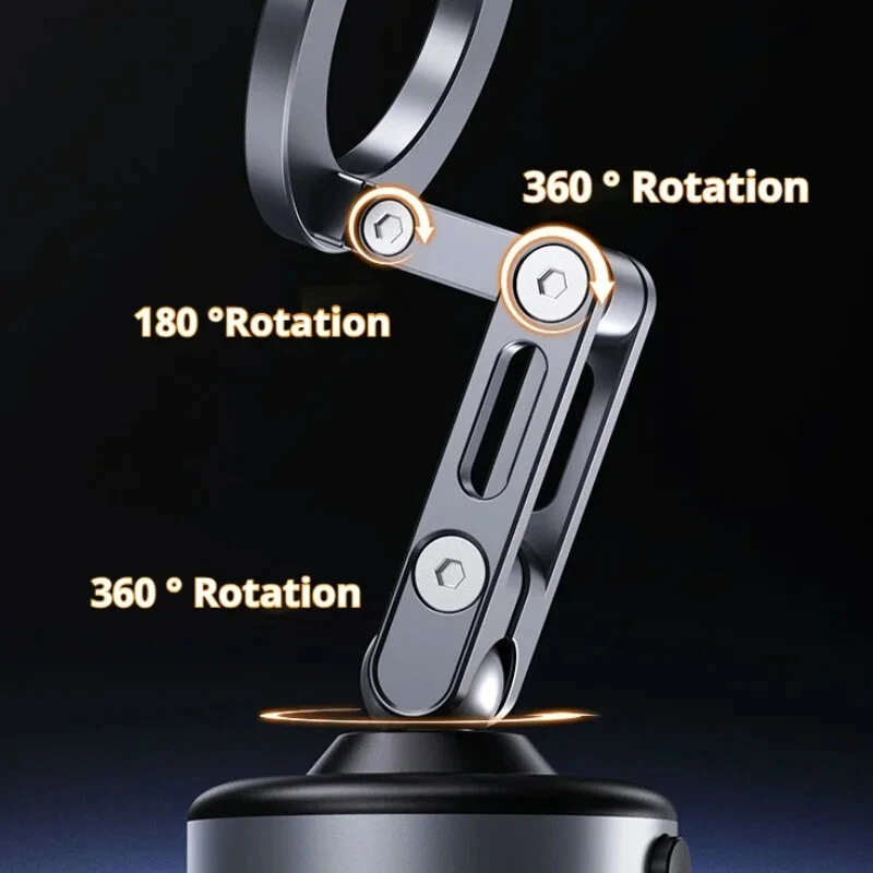 360 Magnetic Phone Holder Strong Suction Dual Vacuum Mount 360 Rotation Universal Fit Aluminum Alloy Type-C Rechargeable Car Phone Bracket
