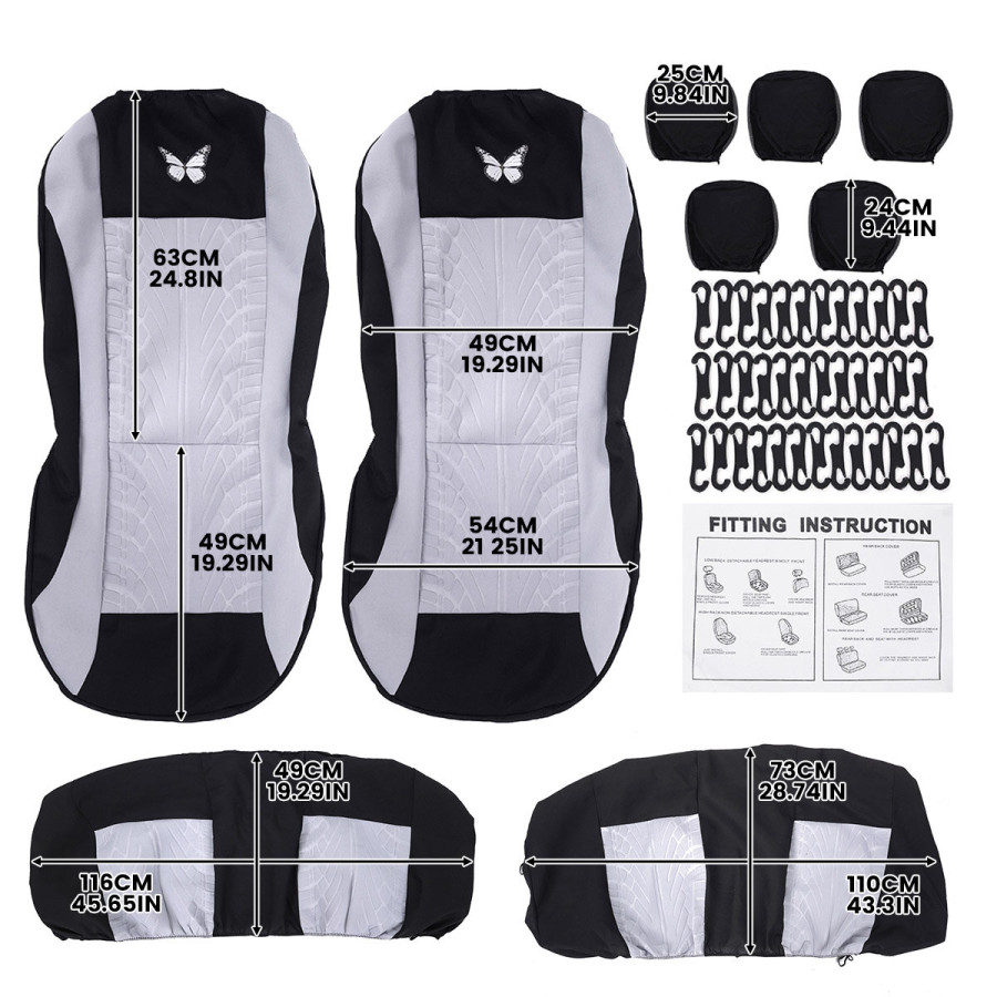 Frequently Asked Questions (FAQ) about This 3D Tyre Embossed Car Seat Covers Full Set Airbag Compatible Breathable Fabric Universal Fit for Cars SUVs Sedans Trucks Easy Installation