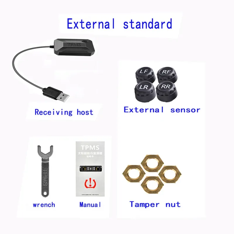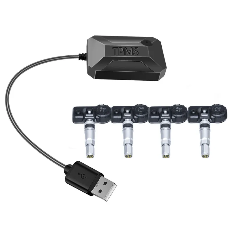 4 Wheel USB Android Car Tire Pressure Alarm System 433.92MHz TPMS Wireless Transmission Auto Security Temperature Alarm System