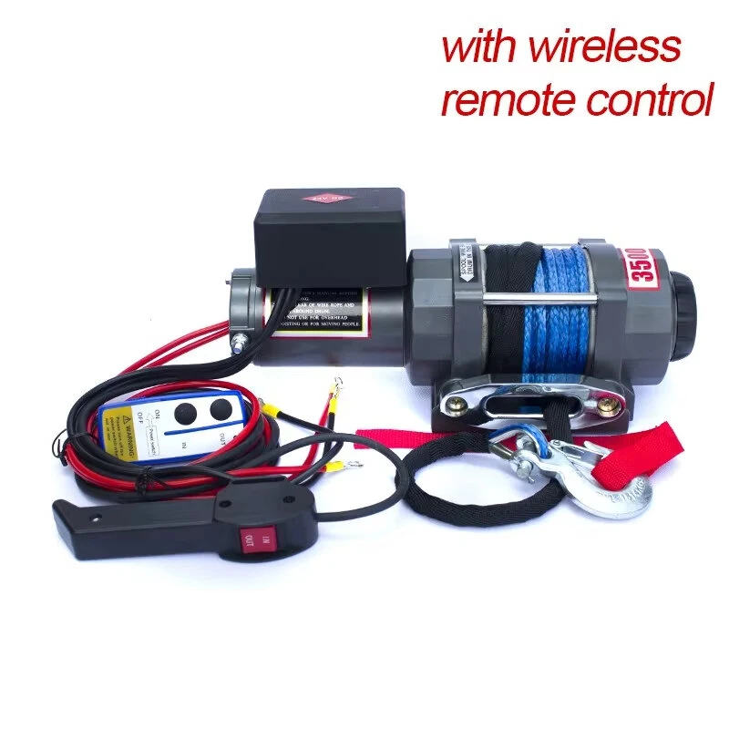 4500lbs 12V Electric Winch Pulling Capacity Nylon Rope Wireless Remote Control Rotatable Clutch High Torque Permanent Magnet Motor Heavy Duty Winch for ATV UTV Small Trailers