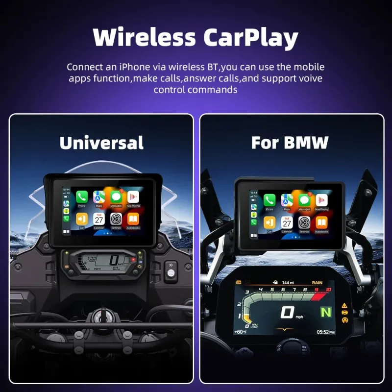 5.0" Wireless CarPlay Moto Android Auto Portable Digital Motorcycle Dashboard GPS Navigation Screen For BMW R1200GS R1250GS