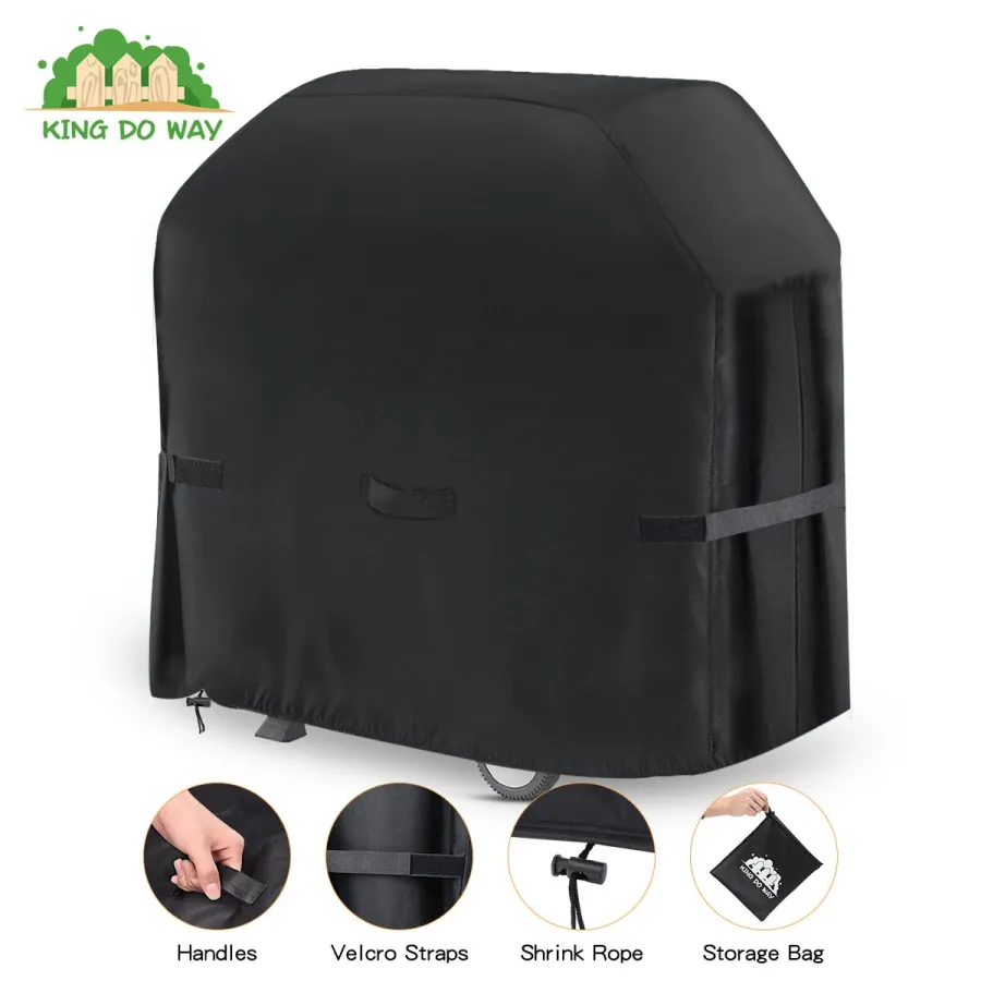 Frequently Asked Questions (FAQ) about This 58 inch Grill Cover Heavy Duty Waterproof BBQ Grill Cover with Handle Straps Storage Bag and Shrink Rope Outdoor RipProof Dust-Proof Anti-UV for Weber Brinkmann Outback Char-Broil