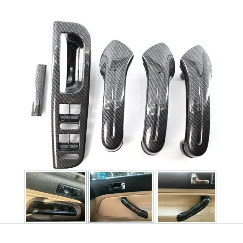5pcs Interio Door Grab Handle Cover Switch Bezel Set Carbon Fiber Style for VW Jetta Golf Bora MK4
