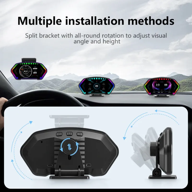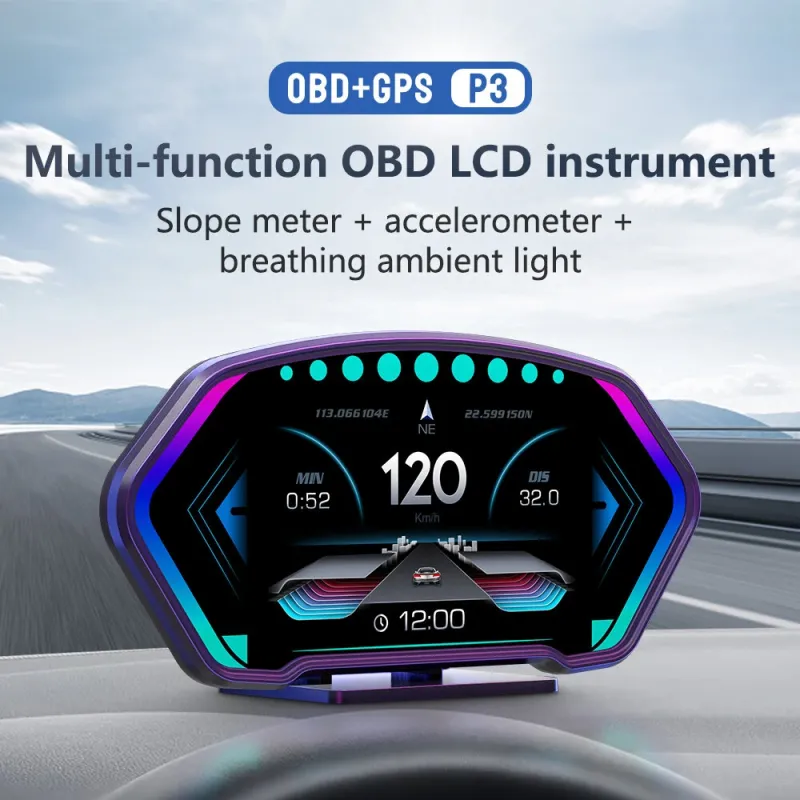 6-inch LCD Screen P3 Car Head Up Display 36 Function OBD+GPS Dual System HUD Slope Meter Accelerometer Breathing Ambient Light
