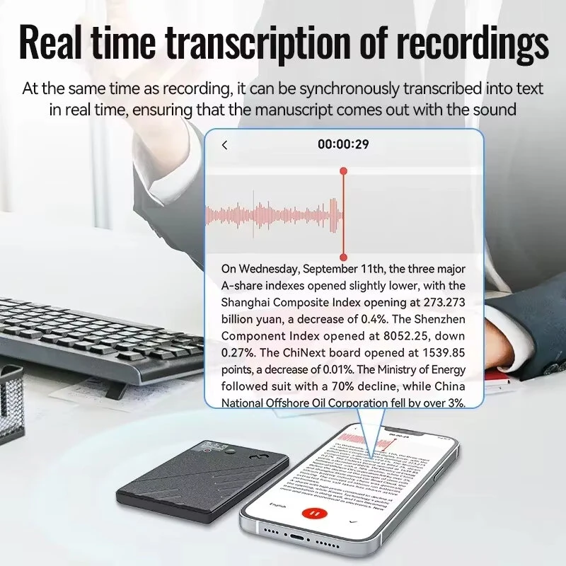 A5 AI Voice Recorder bluetooth Real-Time Transcription 60 Languages Translation ChatGPT 4 AI Summarization App Control Voice to Text 25H Battery Life Portable Magnetic Voice Recorder