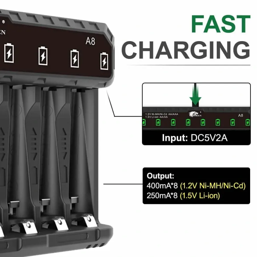 A8-SlotUniversal Battery Quick Charger for 1.5V/1.2V Li-ion Rechargeable AA AAA Batteries For Flashlights Home Tools Child's Toys