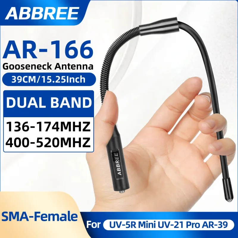 ABBREE AR-166 SMA-Female Gooseneck Antenna UHF VHF 39cm Flexible 360 Bending High Gain Signal Booster for Ham Radio Walkie Talkie Baofeng