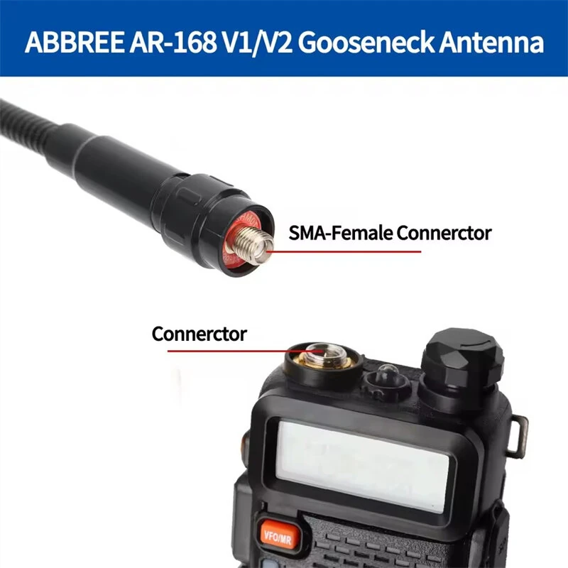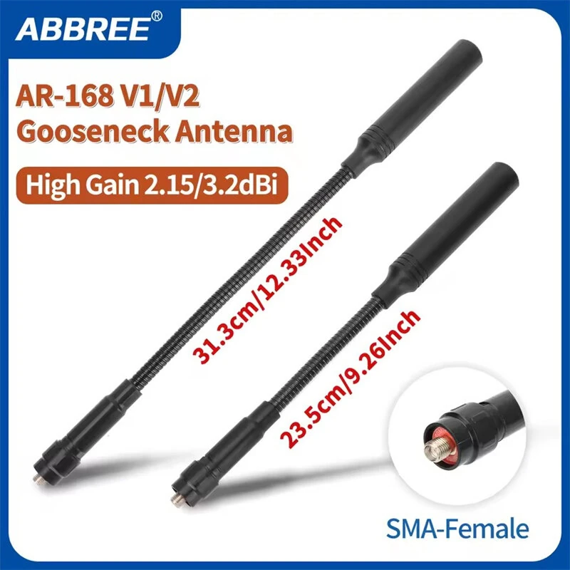 ABBREE AR-168 V1/V2 Gooseneck Tactical Antenna Dual Band VHF/UHF 144/430MHz High Gain SMA-Female for Baofeng UV-5R UV-K5 Walkie Talkie Accessory