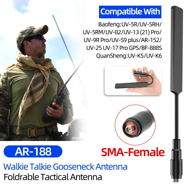 ABBREE AR-188 SMA-Female Tactical Antenna Dual Band 25W UHF/VHF 136-174MHz 400-520MHz High Gain Compatible With Baofeng Radios Enhanced Signal Reception