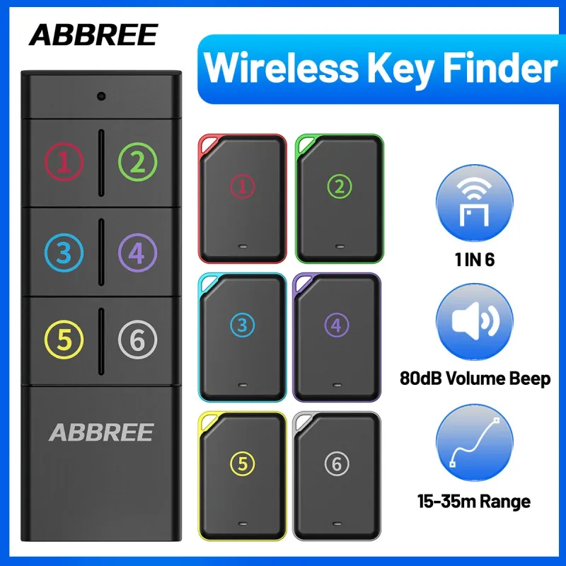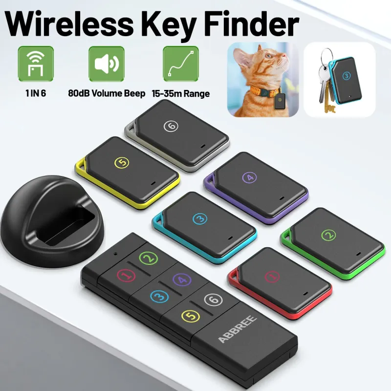 ABBREE KF-106 Wireless Key Finder 50-100 Ft Range 80 dB Sound CR2032 Battery Key Finder Pet Tracker Item Locator Anti Lost Device
