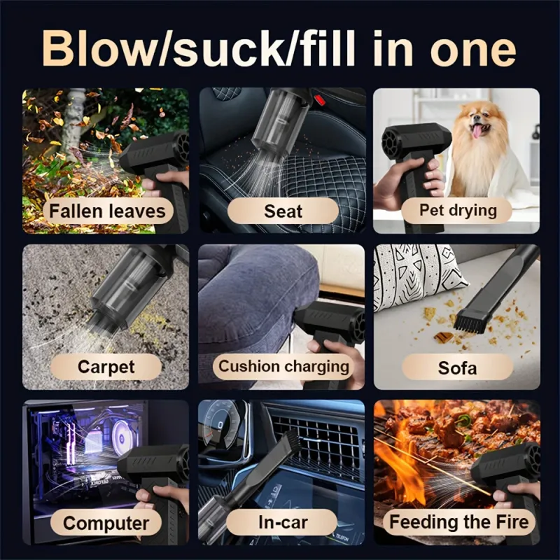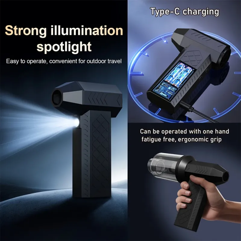 AJ-C1 2-in-1 Cordless Blower Vacuum and Air Duster 4000mAh Brushless Motor Rechargeable Turbo Fan Adjustable Speed for PC Keyboard Car Home Garden Camping