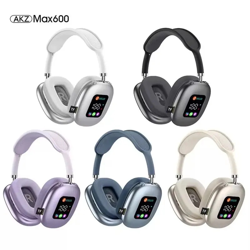 AKZ MAX600 Wireless Headset Bluetooth Headphones HiFi Bass Driver 3D Stereo Low Latancy Digital Display Screen Headset