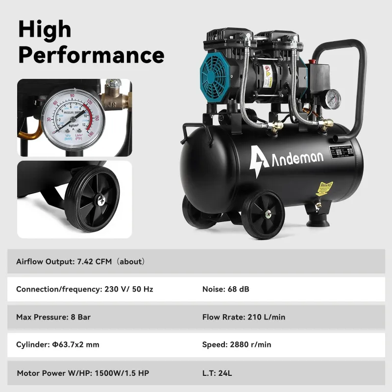 Andeman 1500H-30 air compressor, oil-free, quiet, low-frequency 230V, 50HZ, 24L, 150W, custom model, high efficiency and low noise