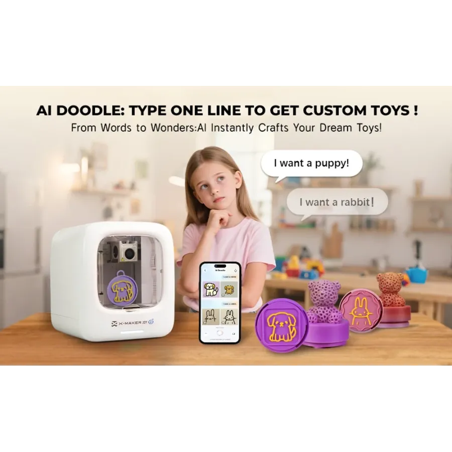 AOSEED X-MAKER JOY AI Kids' V4.0 3D Printer with 4 PLA Filaments 300mm/s Print Speed 120120120mm Build Volume Support Wi-Fi App Control