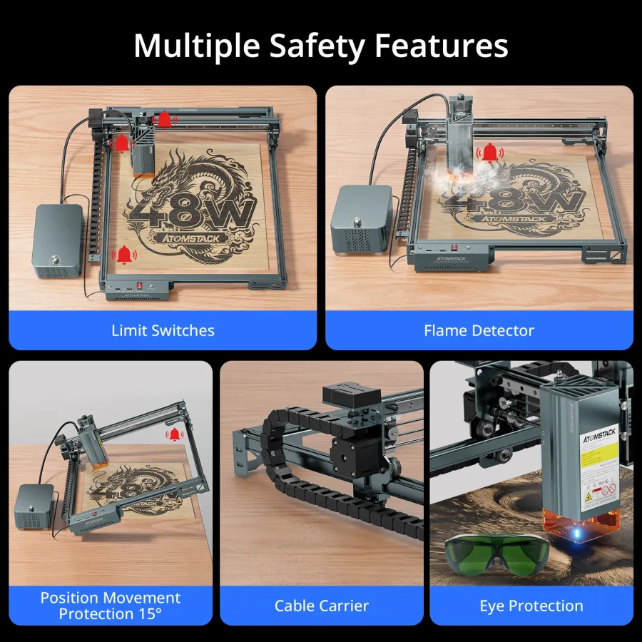 Frequently Asked Questions (FAQ) about This ATOMSTACK A40 PRO V2 48W Laser Engraver with Auto Air Assist High Accuracy Laser Cutting Engraving Machine for Wood, Stone, Metal, Acrylic, Leather, Jewelry