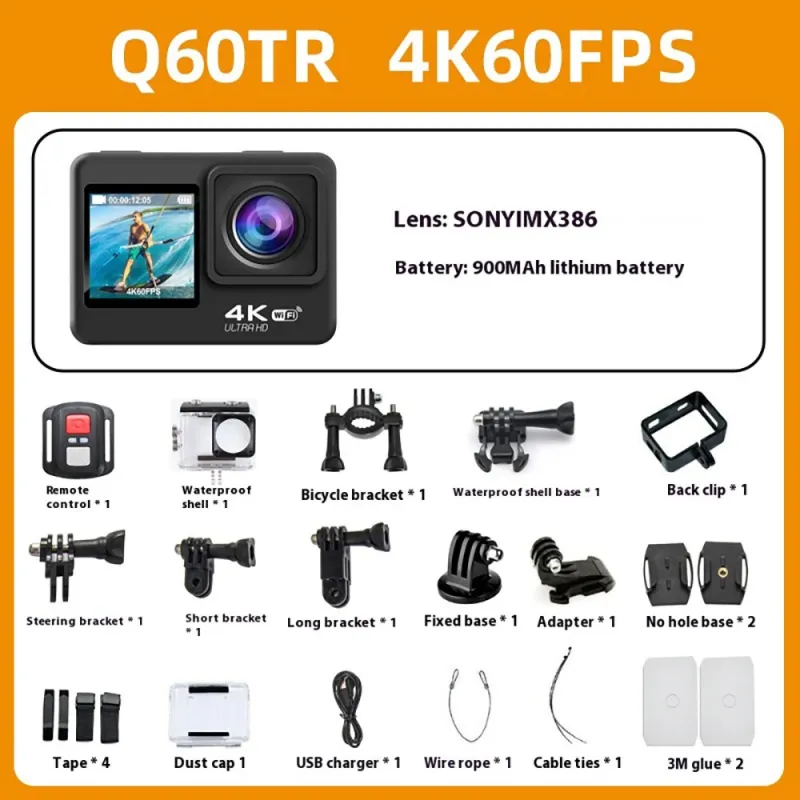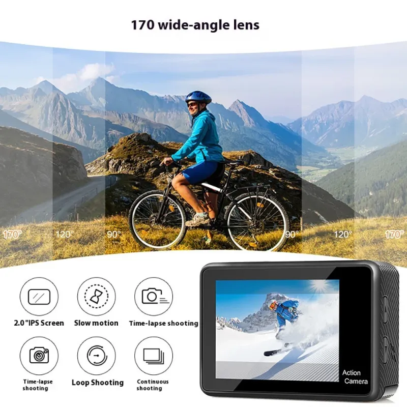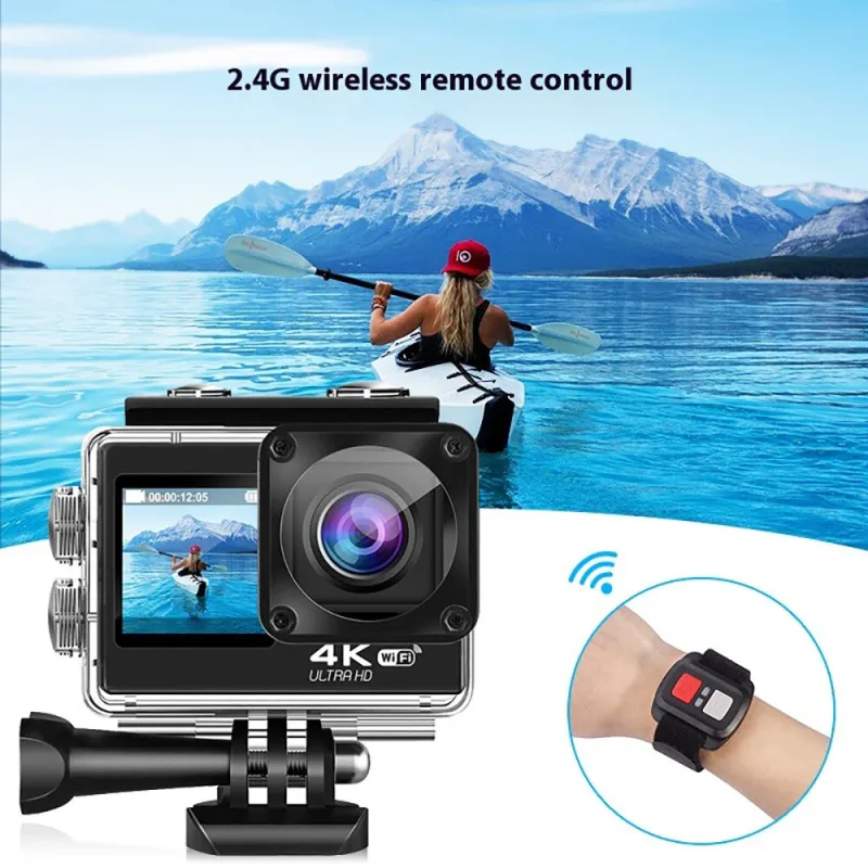 AUSEK 4K 60fps Action Camera with Dual Screen Sport Camera Anti-Shake Remote Control Video Wifi Oet Wide Angle DV Camera Sports Camera 30m Waterproof Ratingutdoor Cycling Helm