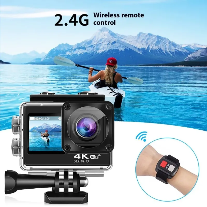 AUSEK 4K WiFi Action Camera Photography Sports Camera Waterproof HD Dual Screen Wifi Remote Control Outdoor Shooting Cycling Skiing Underwater Camera