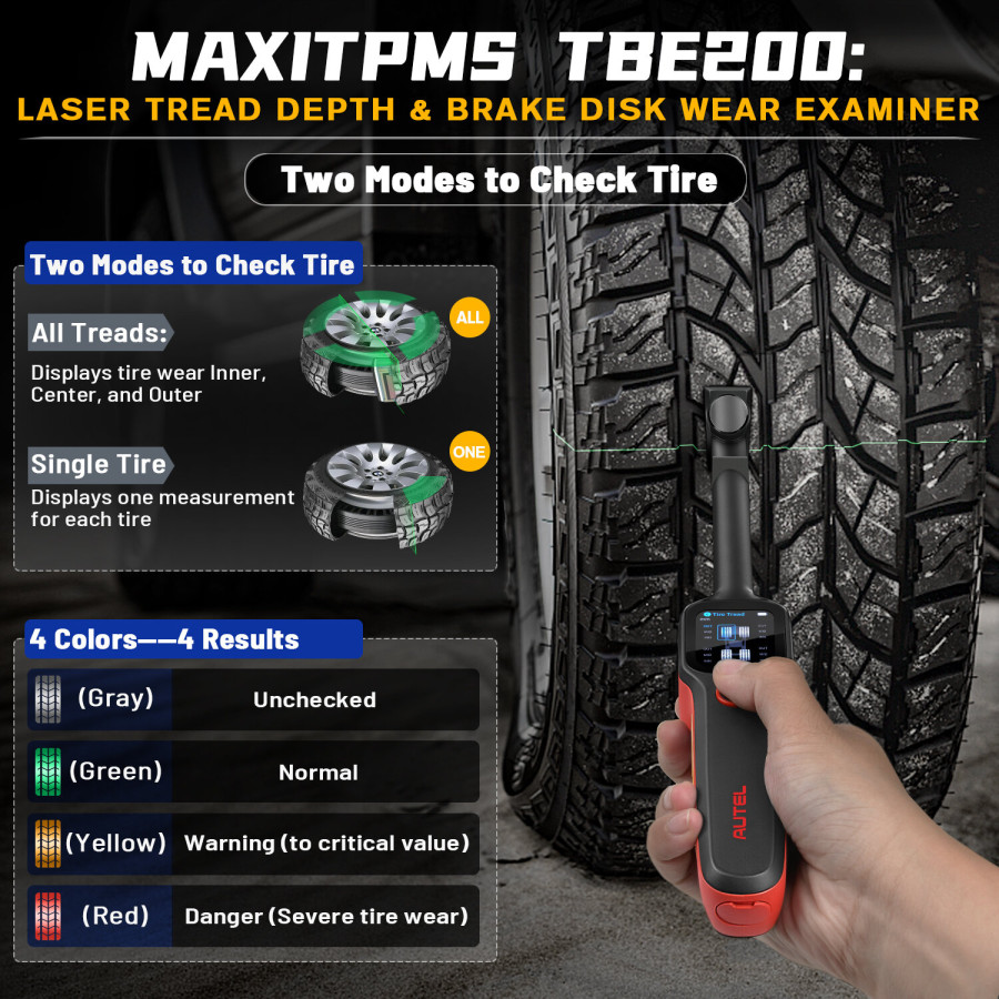 Autel MaxiTPMS TBE200E Tire Tread Laser Detector Brake Disc Wear Thickness Diagnostic Instrument Tool Compatible With ITS600