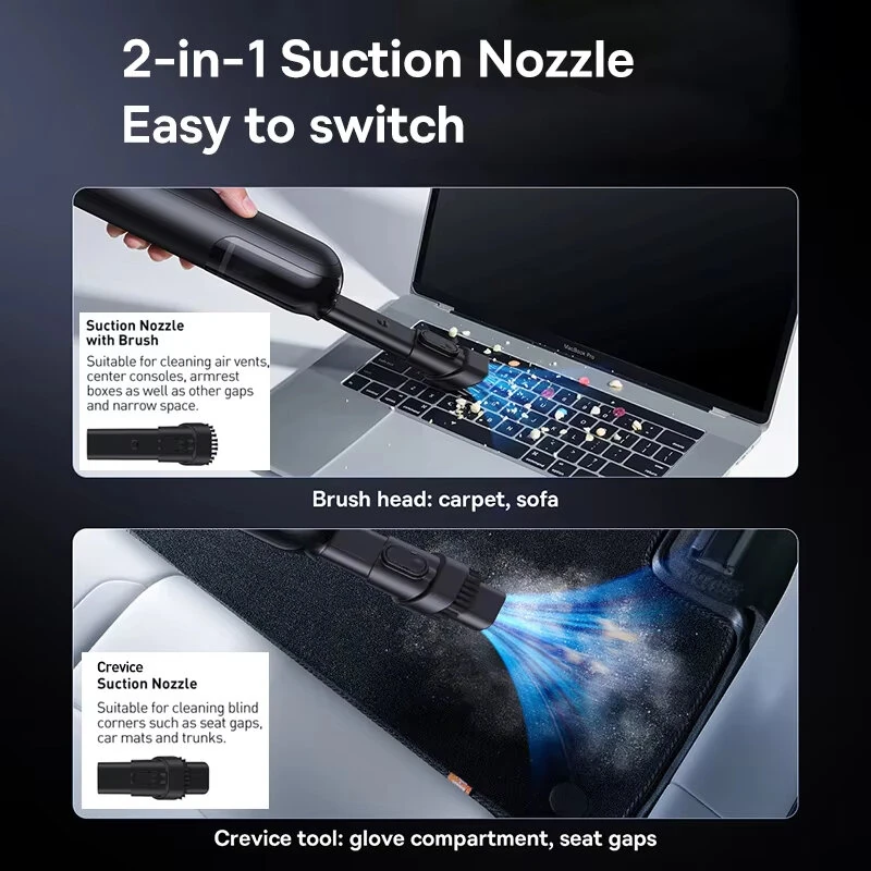 Baseus A0Pro Cordless Handheld Car Vacuum Cleaner Portable 30W High Power 45000rpm Suction Type-C Rechargeable Wet & Dry for Car Home