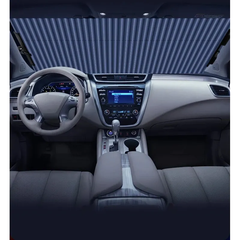 Car Front Windshield Sunshade Curtain Summer Heat Insulation Retractable Front Rear Window Sunshade Protector UV Reflective Film Car Sun Visor Cover