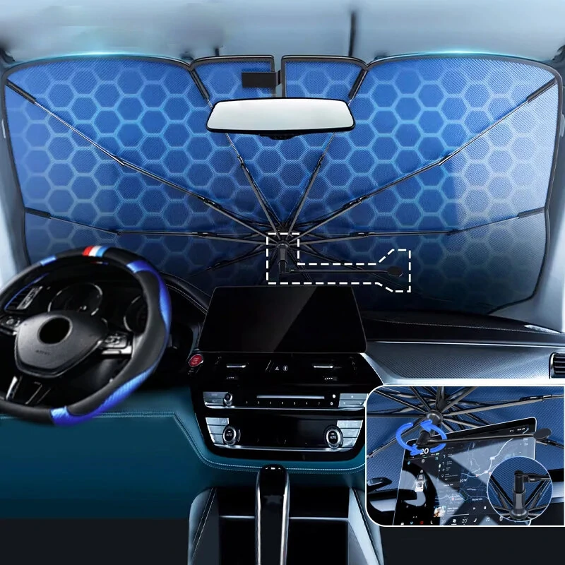 Car Front Windshield Sunshade V-Neck Foldable Umbrella Reflective Sunshade For Vehicles Blocking UV Sunshade Summer Keep Cool
