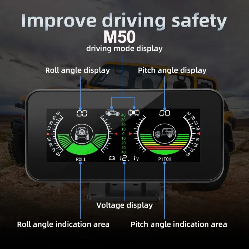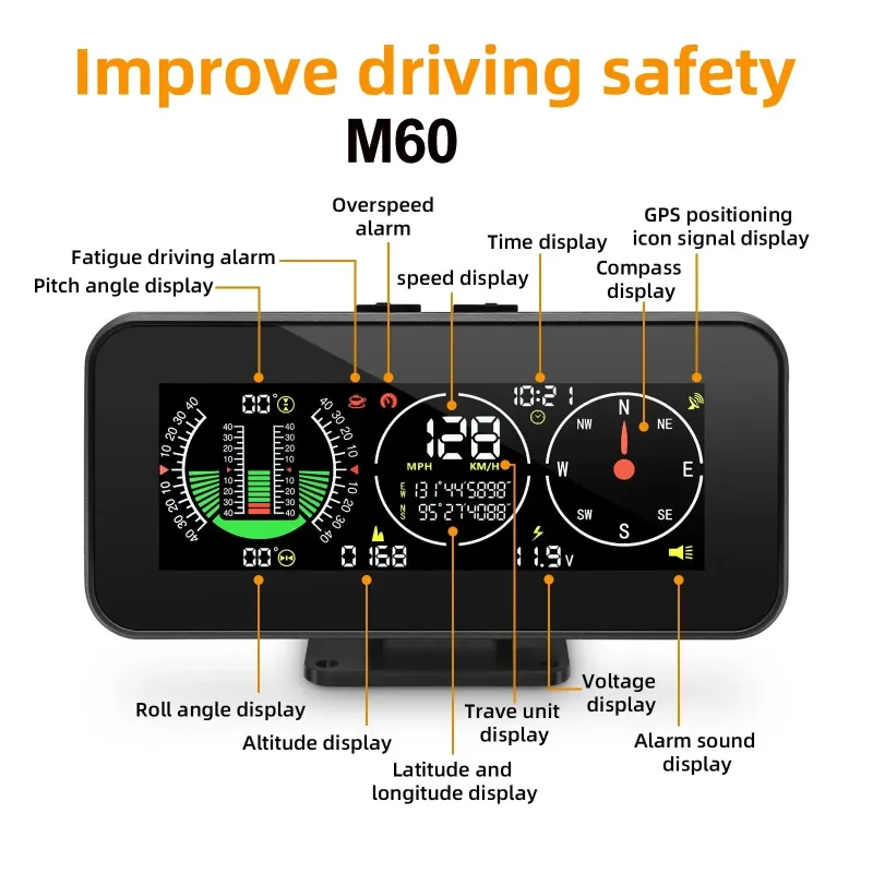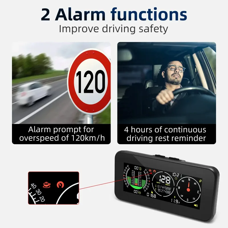 Car Head Up Display Digital Speed Slope Meter Inclinometer With GPS Speedometer Compass Real Time Measurement
