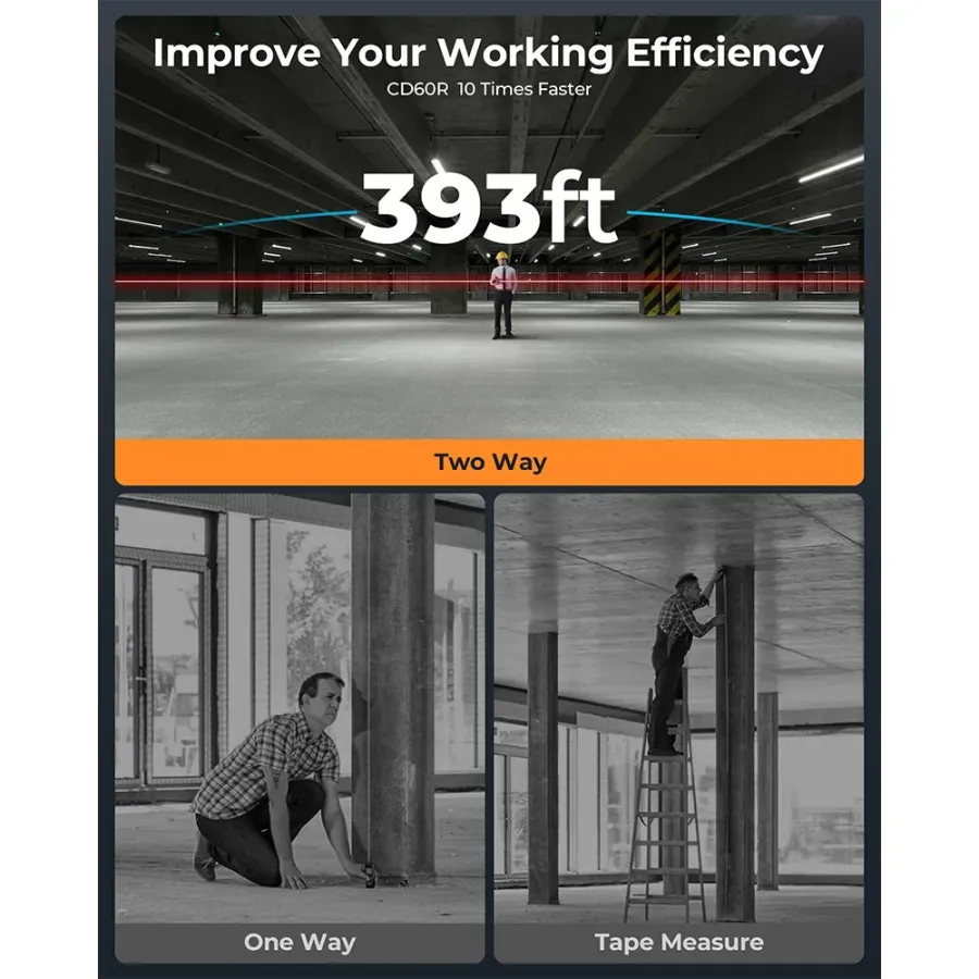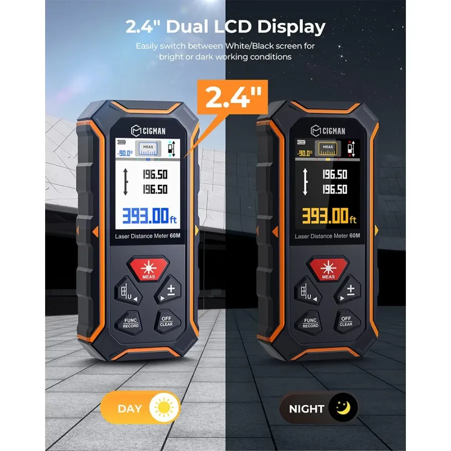 CIGMAN CD-60R Bilateral Laser Distance Meter 393ft/120m Color Backlit Display Rechargeable Type-C IP54 Waterproof Measurement Tool