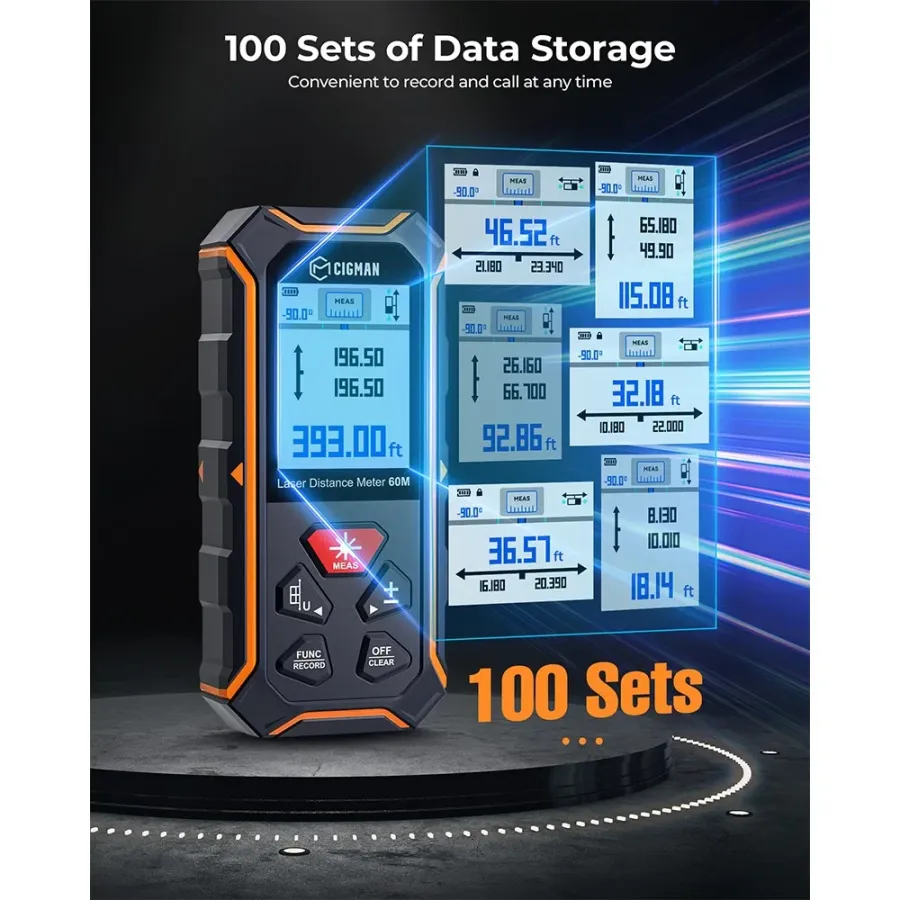 Frequently Asked Questions (FAQ) about This CIGMAN CD-60R Bilateral Laser Distance Meter 393ft/120m Color Backlit Display Rechargeable Type-C IP54 Waterproof Measurement Tool