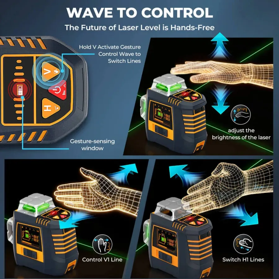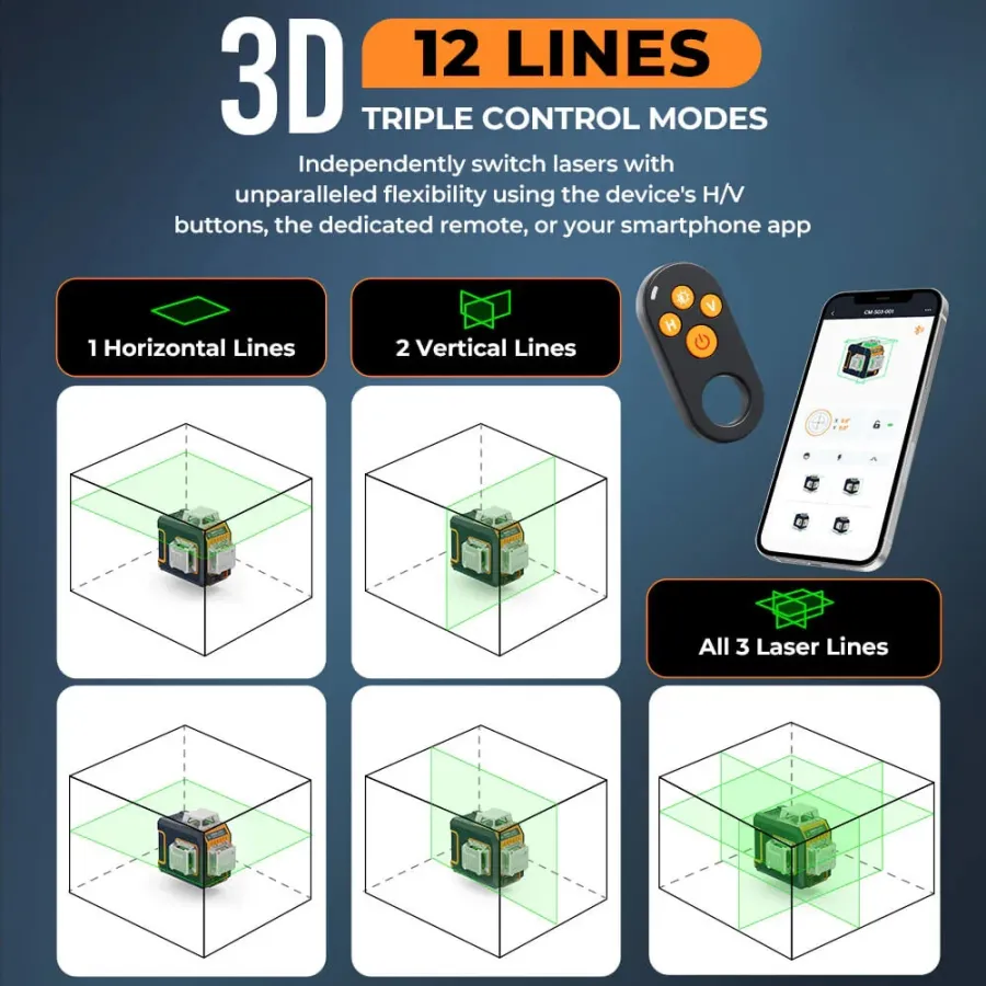 CIGMAN CM-S05 Gesture Control 12 Lines Laser Level 3x360 Green Self-Leveling High Precision APP Bluetooth Remote Digital Display
