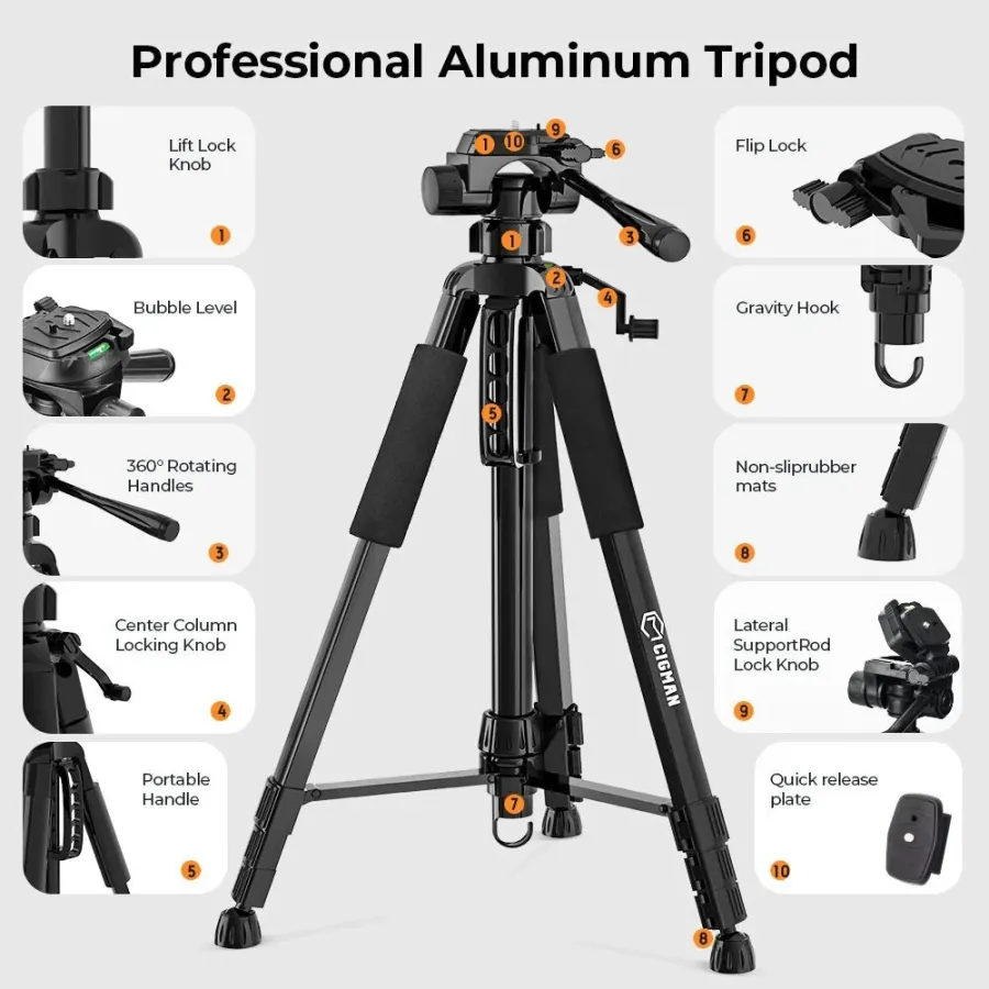 Frequently Asked Questions (FAQ) about This CIGMAN CTP01 Professional Adjustable Laser Level Tripod Lightweight Aluminum 1.5M Height 360 Rotation 3-Way Swivel Pan Head for Laser Levels Cameras Projectors Phones