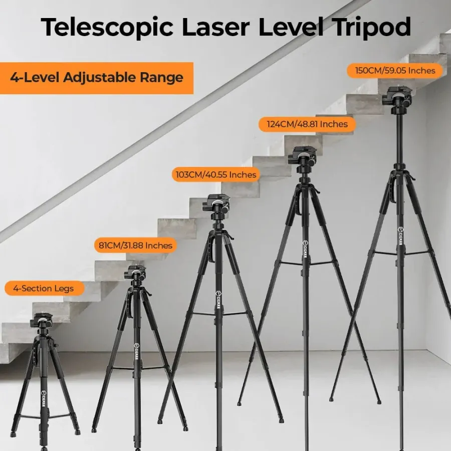 CIGMAN CTP01 Professional Adjustable Laser Level Tripod Lightweight Aluminum 1.5M Height 360 Rotation 3-Way Swivel Pan Head for Laser Levels Cameras Projectors Phones