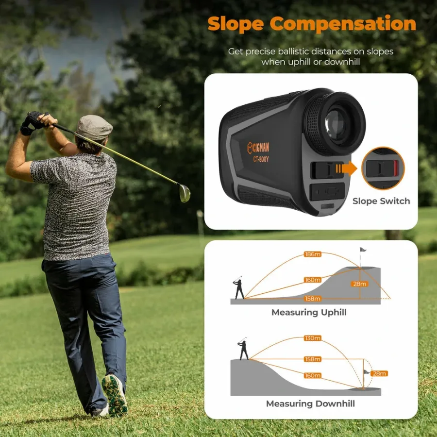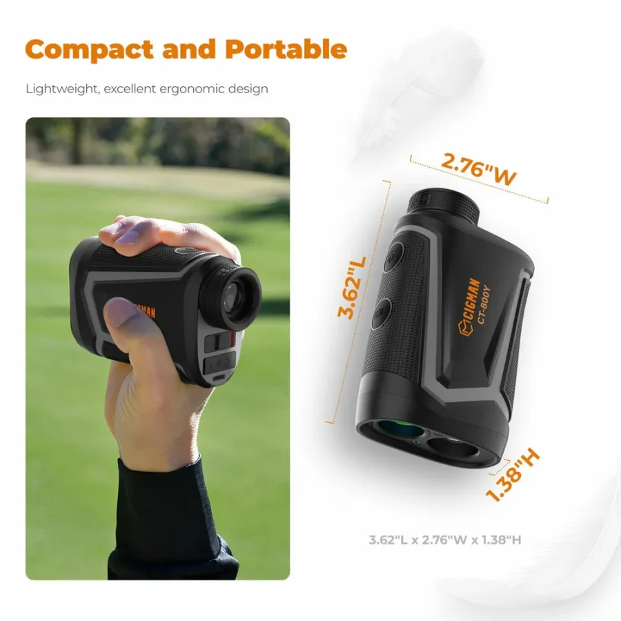 CIGMAN Precision Golf Rangefinder with 850 Yards Range and Slope Compensation Accurate Laser Distance Measuring Device Rechargeable Li-ion Battery High Definition LCD Display Portable Golf Hunting Climbing Bird Watching