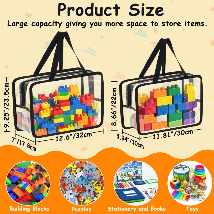 Clear Black Toy Storage Bags 4-Pack Large Size x2 Extra Large Size x2 Large Size x4 Extra Large Size x4